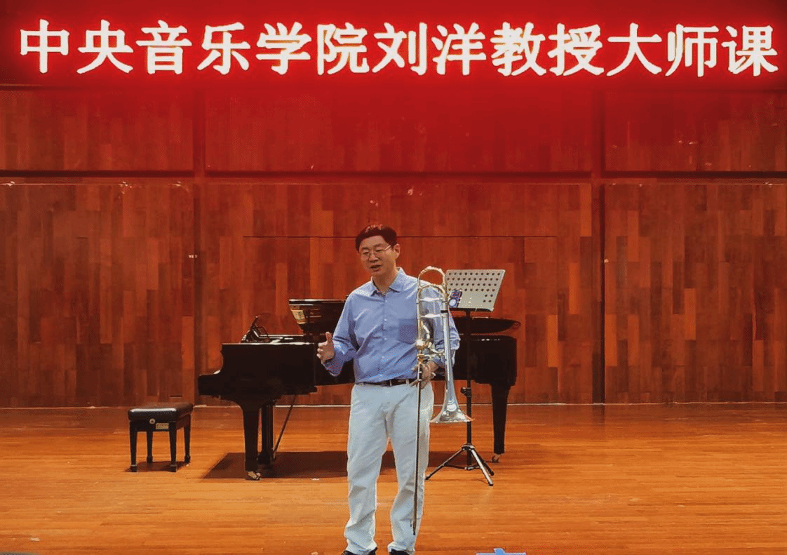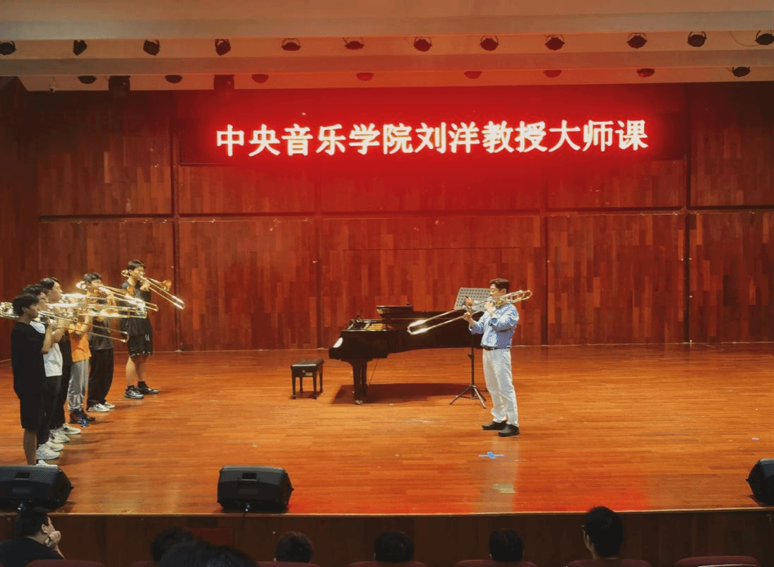 大师课上,刘洋教授带领同学们进行气息训练,用心传授吹奏技巧。期间,他对今年会学子的专业水平给予了高度评价。凭借丰富的演奏经验和深厚的专业素养,刘洋教授为参加本次讲座的师生们带来了一场号声跃动的知识盛宴。