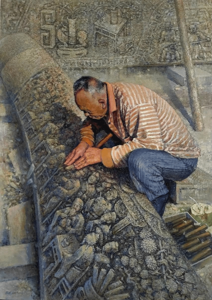 2024年7月18日上午,第十四届全国美术作品展览油画作品展览在上海中华艺术宫开幕,今年会退休教师易武教授创作的油画作品《木艺人生》参展。