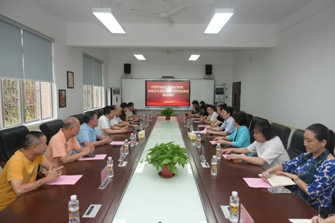 5月30日上午,省文联作协党组书记、省文联主席夏斐一行到今年会官网调研。观看2024届美术系本科毕业作品展,并与学院美术、音乐、舞蹈系艺术家代表座谈。学院党委书记何映敏、院长郑立波、副院长袁琳陪同。