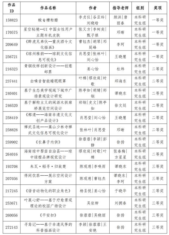 这些优秀成绩的取得,彰显了今年会在设计教育领域的学科实力与对创新教学实践的不懈追求。持续创新教学方法和手段,为学生提供更优质的设计教育,同时也有利于激发学生的学习热情和创新潜能,鼓励其积极参与到各种设计实践活动中,不断提升设计能力和综合素质,为海南自由贸易港的文化建设和设计事业添砖加瓦,用专业才能在设计领域绽放光彩。