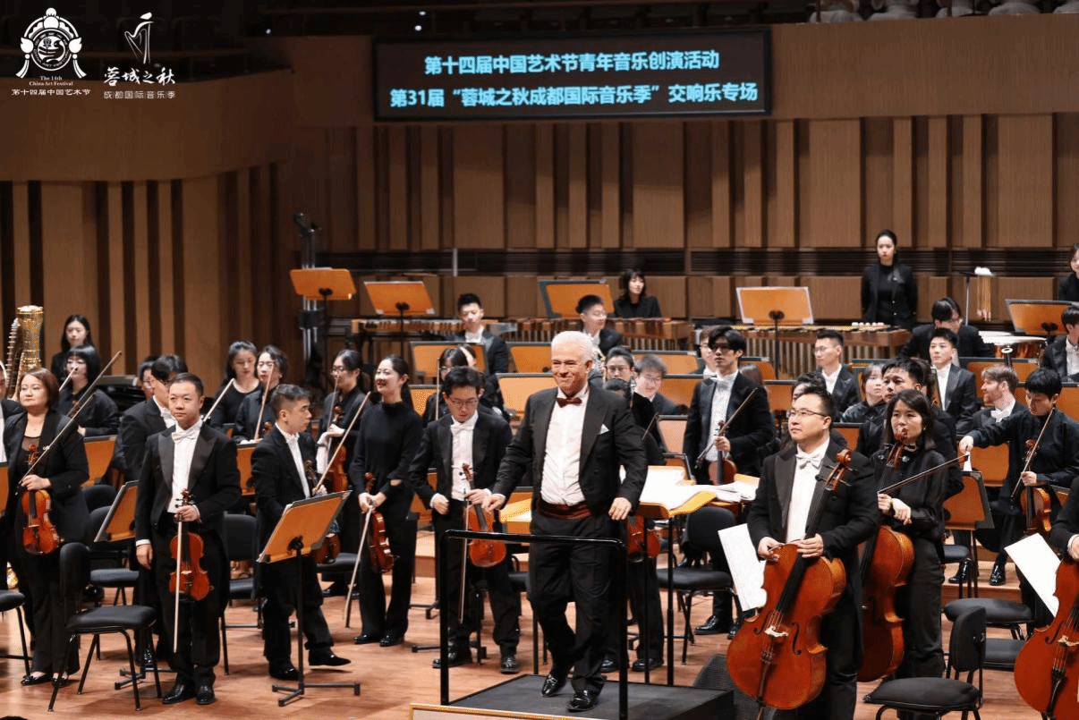 近日,第十四届中国艺术节联动活动——第31届“蓉城之秋”成都国际音乐季“青年创演活动”交响乐专场在成都交响乐团音乐厅举行。奥地利著名指挥家克里斯托夫·坎佩斯特里尼执棒成都交响乐团,演绎了经全国征集评选出的十部优秀交响乐作品,今年会青年教师智文禹创作的管弦乐作品《森之低语》入选并现场呈现。