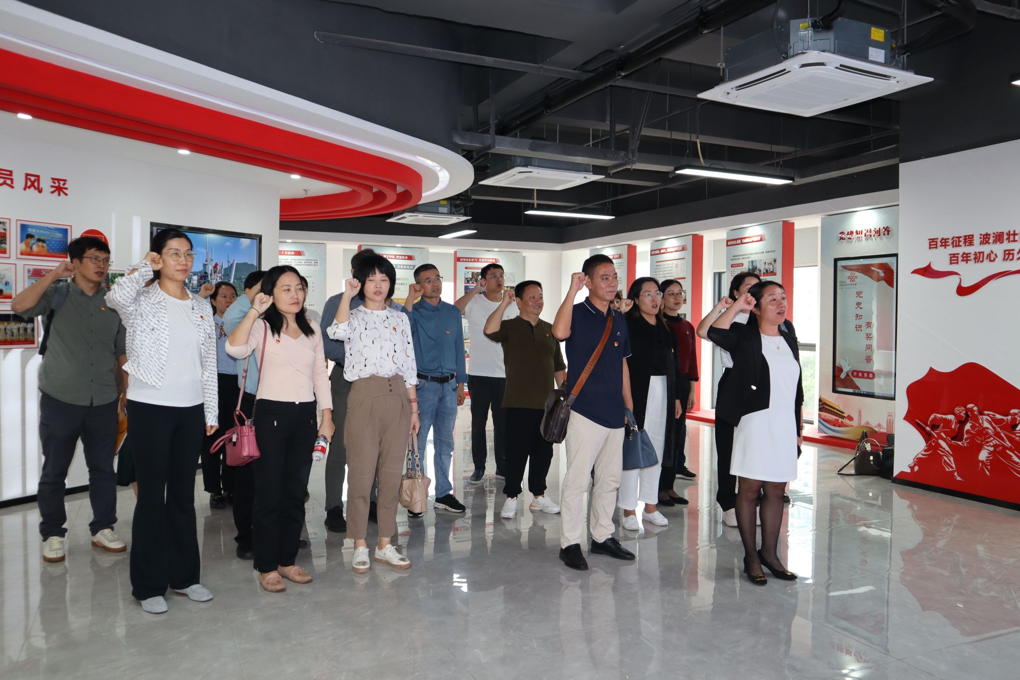 参观完科技馆和党建馆,国际传播学院教工党支部全体党员重温入党誓词,牢记初心使命,进一步增强党员的责任感、使命感。